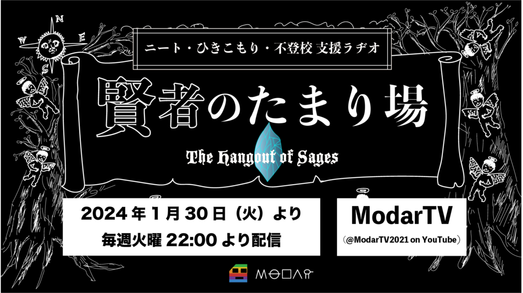 2024.1.30(火) 22:00より YouTube ModarTVにて新番組「ニートひきこもり不登校ラジオ『賢者のたまり場』」を生配信でお届けします。